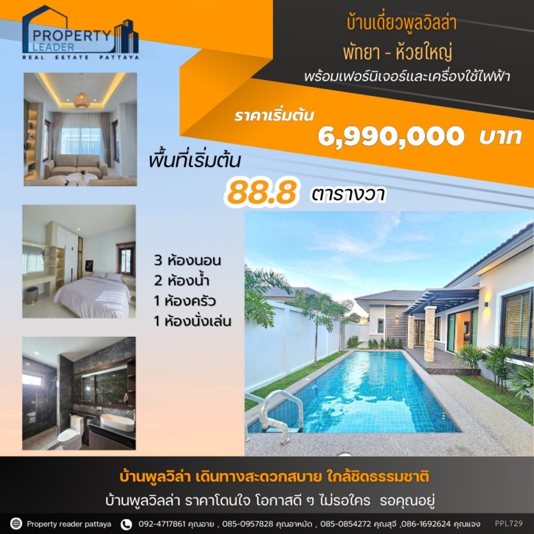 Code #PPL729 🏠 พูลวิลล่าห้วยใหญ่สร้างใหม่ 🚘 พัทยา – ห้วยใหญ่ #ใกล้มอเตอร์เวย์สายใหม่